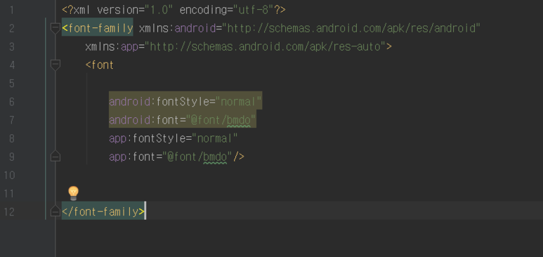 5. fontresourcefle (bm.xml)은 이런형식으로작성해줍니다.