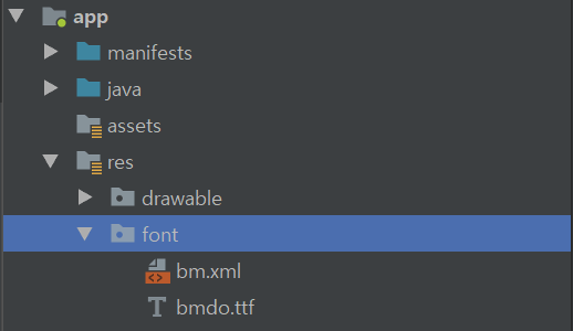 4. res폴더에 font 폴더를 만들어 주시고 , 글꼴을 복붙에서 이폴더에 넣어주고, fontresourcefile을 만들어 줍니다.