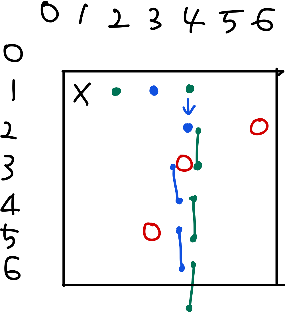 h,w=1,1 #첫 시작, 뱀의 머리 위치