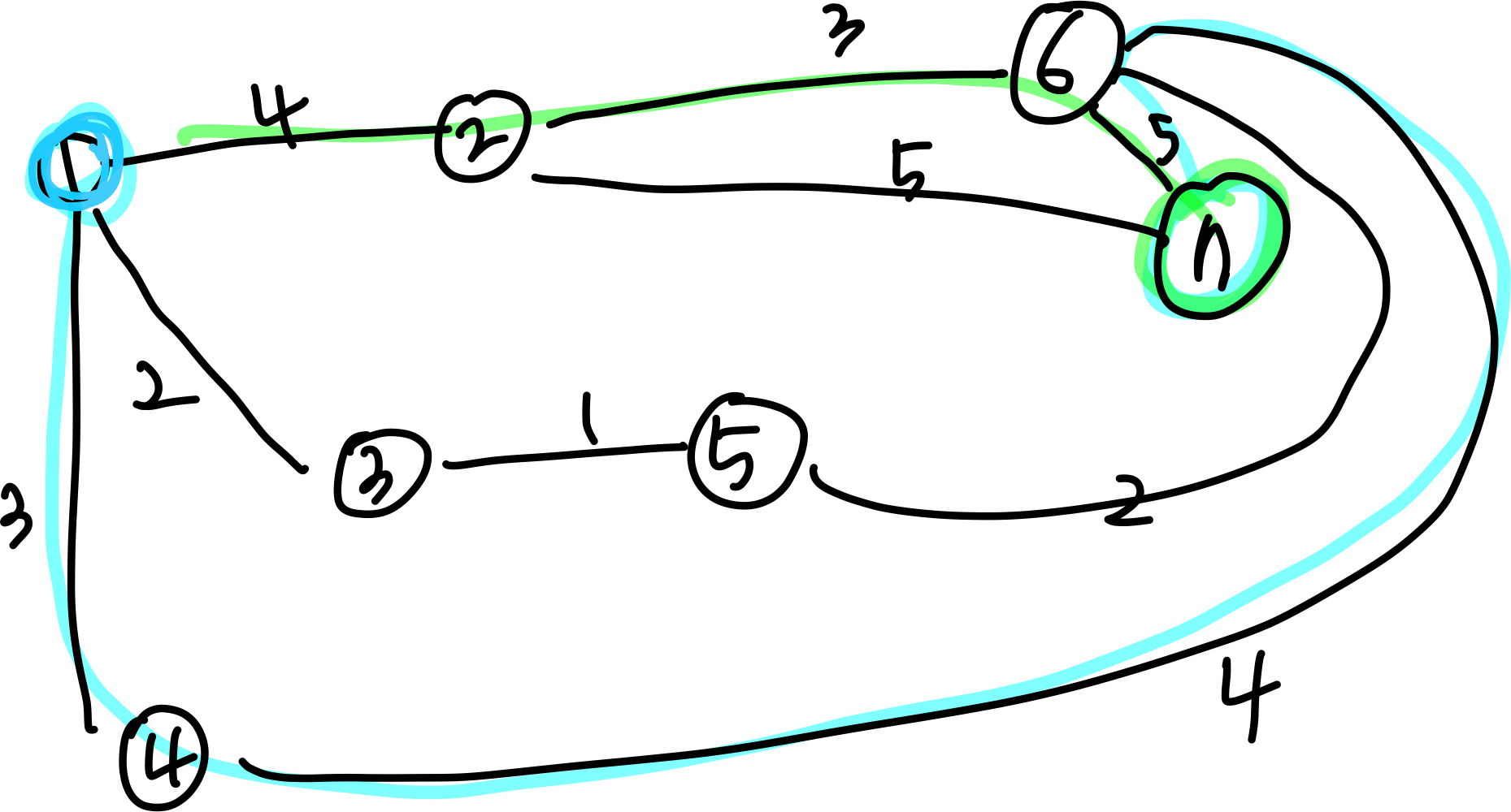 #도착점까지의 비용에서 시작점의 비용을 뺐을 때 그 간선비용과 같다면
