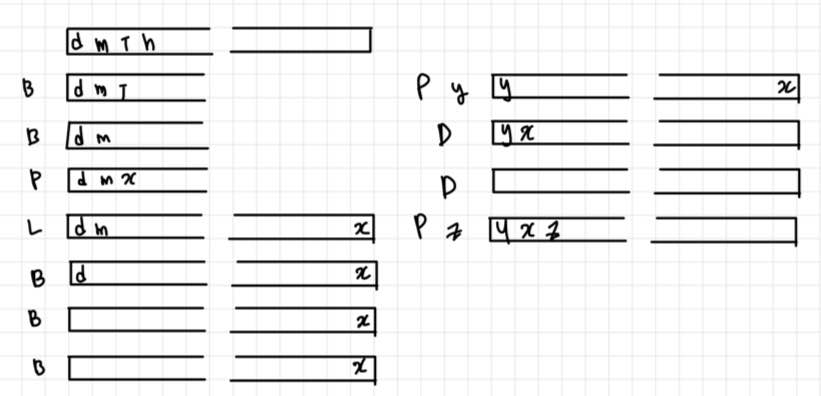 | - 두 개의 스택을 이용해서 풀 수 있으며 스택의 top이 커서가 된다. 투스택 - 스택1번이 커서 왼쪽 , 스택 2번이 커서 오른쪽이 된다 - 1. 스택 두개를 만든다. - 2. 초기 문자열을 스택1번에 넣는다 - L : 커서 왼쪽으로, 첫번째 스택의 top을 두번째 스택으로 push - B : 커서왼쪽의 문자삭제 , 첫번째 스택의 top을 pop - D : 커서를 오른쪽으로 , 두번재 스택의 top을 첫번재 스택으로 push - P : 문자하나를 추가한다. => 스택1번에 append |