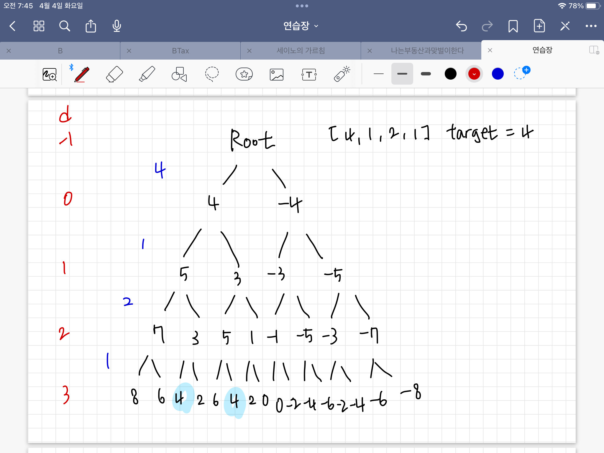 dfs(d+1,n,res-numbers[d+1],numbers,target) #뺄 경우
